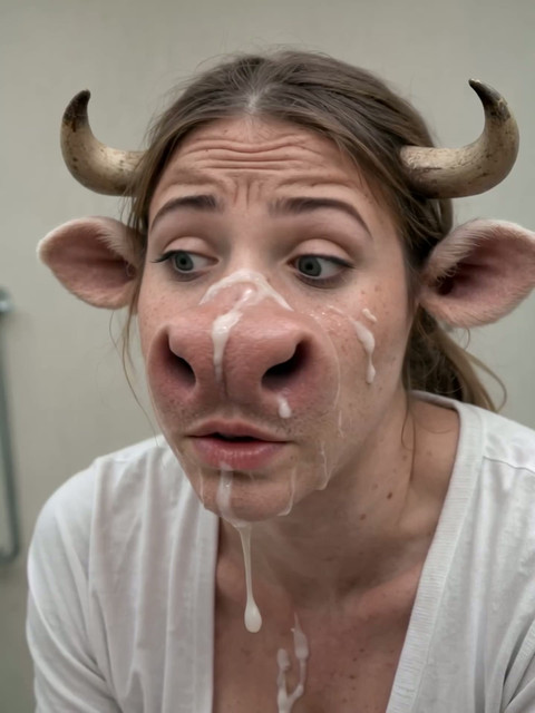 GirlsWithSnouts - Cow - Cum Out of Her Nostrils, Down Her Chin [
