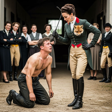 LouFerrox - Equestrienne whipping a stableslave, girls laug