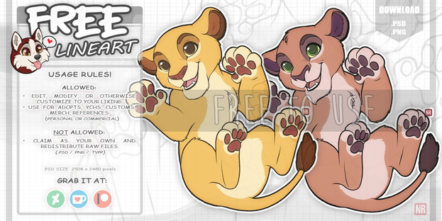 NorthernRed - FREE TO USE: Lion cub floating x2line (cartoony)