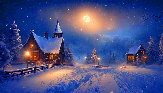 VoodooChild4201 - Ai winter scene lake forest houses landscape