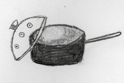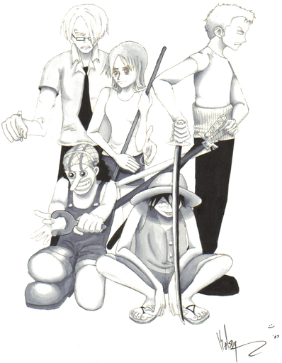 If you haven't realized, I REALLY have an unhealthy and strange obsession with kitchens and anything in them (appliances, food, dishes, pots....). Heh, and why do I love Sanji...? 8) And I also LOVE pot racks! And this turned out well, so I'm proud of it, even if it could be a lot better. It was harder than it looks to get drawn correctly...
