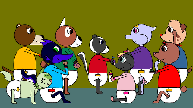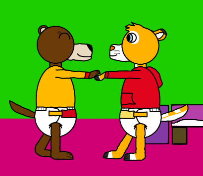 #diaper #diapered #howling #moon #night #practice #pups #rock #standing #twins #wolf