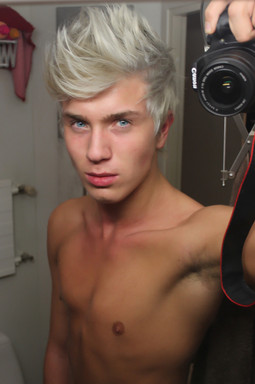 Quite a sensual photograph, Ragnar. Your expression, the chain over your shoulders, your untied boots and your killer good make this photograph fascinating on many levels. It could be seen as a graphic invitation for sex, or it could be seen as defiance on your part to societal norms, or it could be seen as an assertion of your youthful masculine sexuality since the placement of your hand draws attention to that aspect of maleness. Or it could suggest a certain ennui in life which can only be alleviated by a sexual encounter.