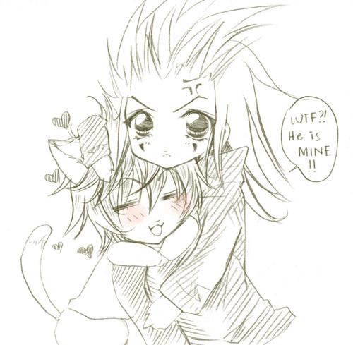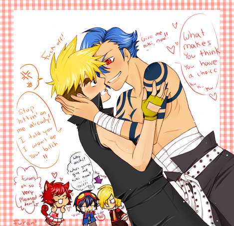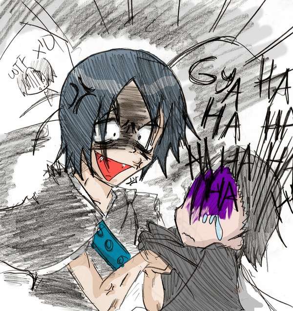 Nice!! I hope you don't get in trouble anymore...that'd be bad. D: This is a funny and >///< pic!!