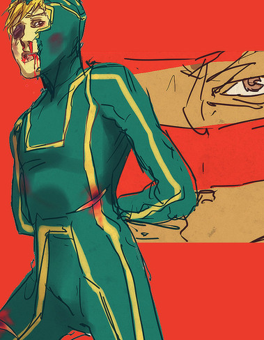 awesome drawing, but kick ass has brown hair, right? o: