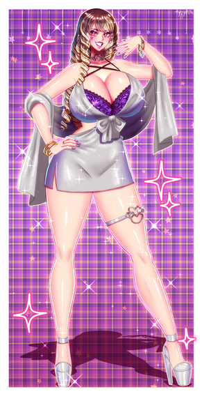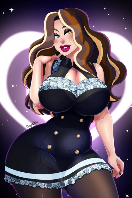 #digitalart #dress #bigboobs #bigbreasts #bigtits #boots #commission #curlyhair #draw #drawing #fullbody #girl #illustration #commissionart