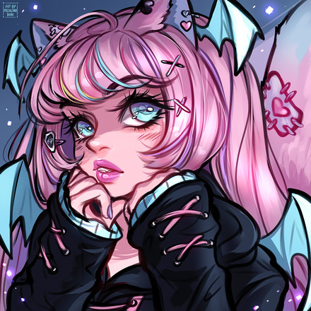 #draw #oc #originalcharacter #catears #digitalart #drawing #eyeshadow #girl #greenhair #illustration #oc_artwork