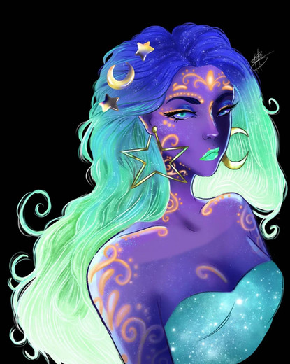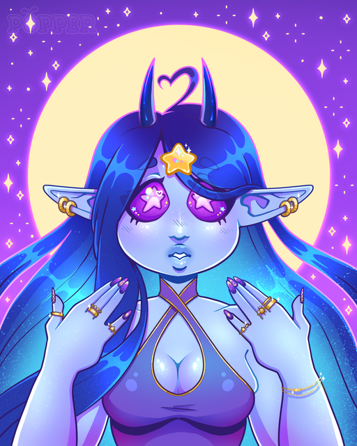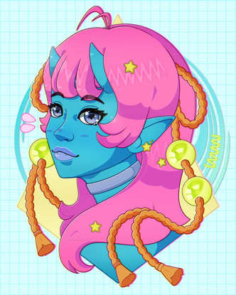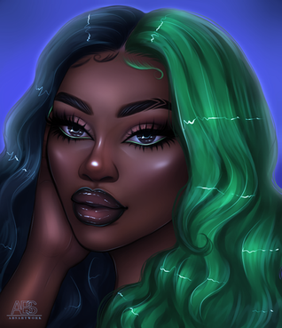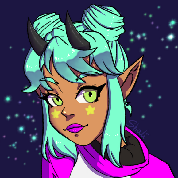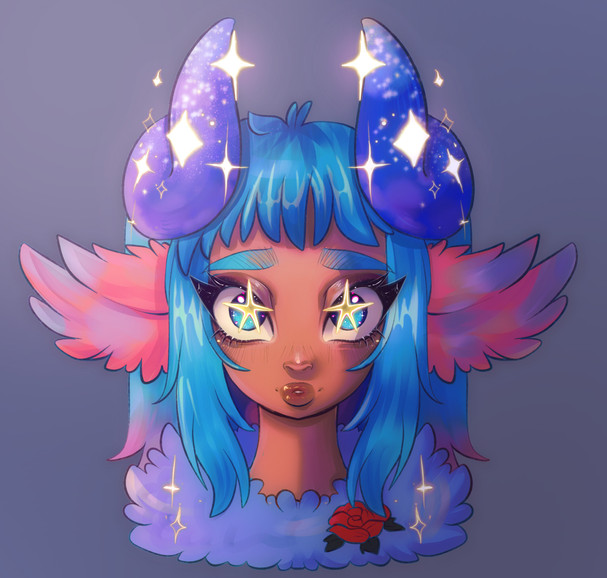 #draw #drawing #horns #oc #originalcharacter #bluehair #digitalart #eyeshadow #girl #illustration #darkskinnedgirl #hornsgirl #oc_artwork
