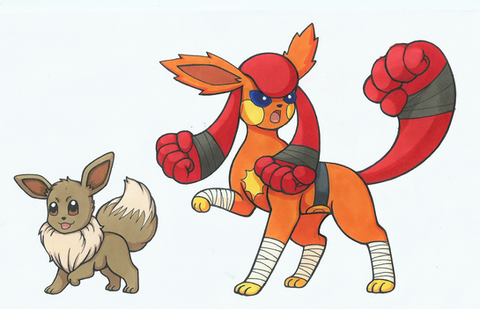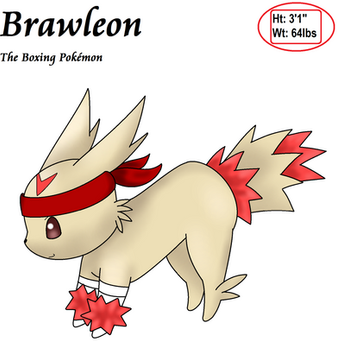 195 - Brawleon (Fighting)Brawleon: The evolved form of Eevee fighter type that progresses to force his coach when Brawleon Eevee a heavy training. Incredibly strong Pokemon that is loyal to his coach and can also learn rock attacks