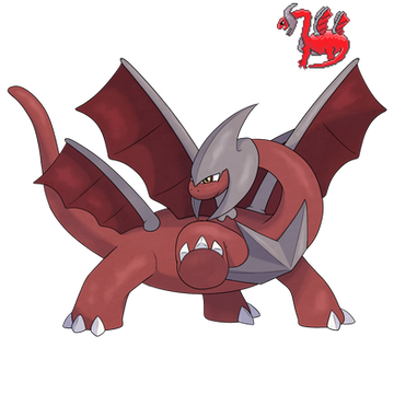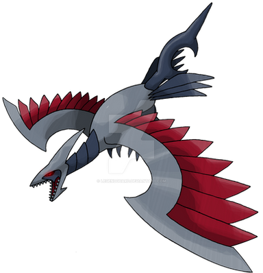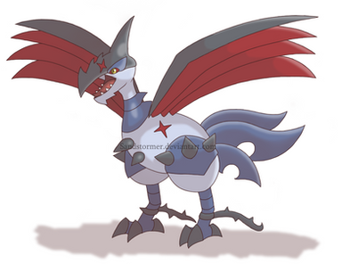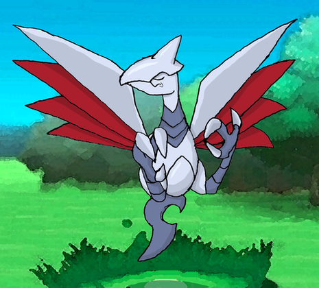 189 - Skarmat (Steel / Dragon)Skarmat: A steel dragon Pokemon. It is the evolved form of Skarmory. This huge and heavy Pokemon flies on the strength of their huge wings formed of several sharp blades, which are capable of slicing rocks and create hurricanes without any difficulty. Terribly fierce and powerful, this Pokemon is one of the rarest in the world.