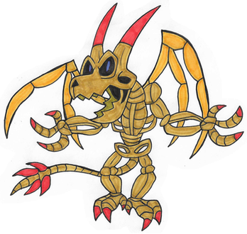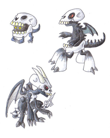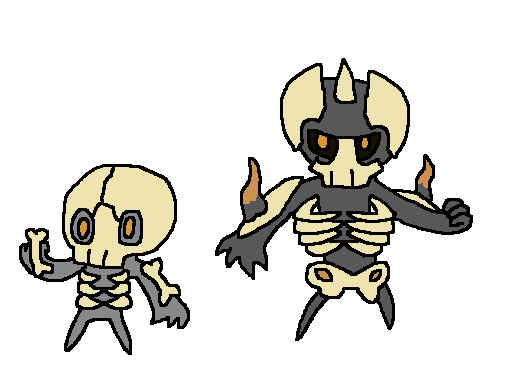 Skeletan: A demonic skeleton Pokemon. This sinister ghost is the evolved form of Skelevil, and different goals who just likes to scare people, he's smart and evil. Like to create frightening situations where humans can corner and make them panic. Scholars think that maybe he was feeding on fear, but little is known about the habits of Pokémon.