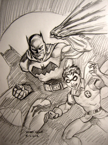 I drew this Batman and Robin piece just for fun, and to try to show I can draw some Batman stuff. The scan isn't the greatest, I blame my crappy scanner.Related content
