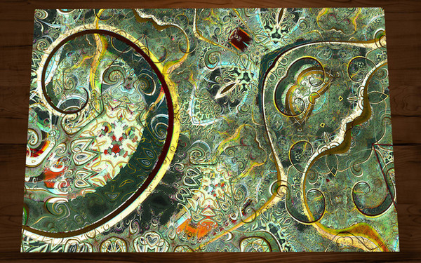 The center looks like a mosaic of smooth stones, all laid carefully into that intricate pattern, but the outside area looks like molded glass. Interesting difference and it makes this image that much more fascinating to look at.