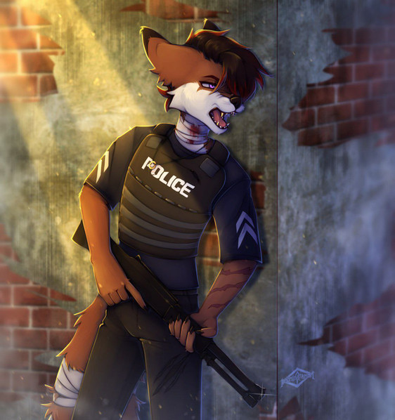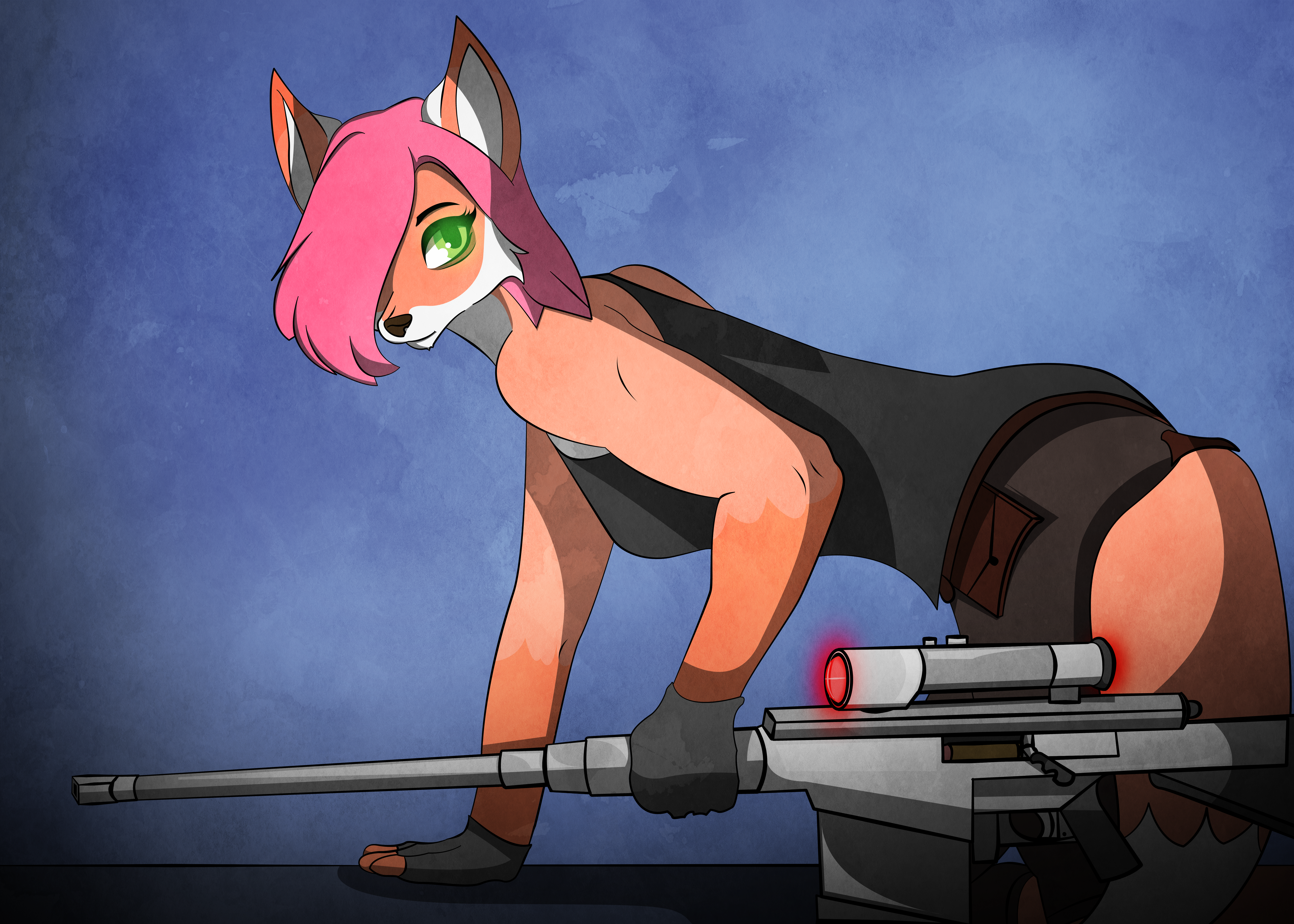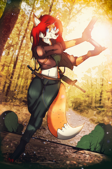 #anthrofox #digitalart #digitaldrawing #digitalpainting #fox #glasses #gun #jacket #orange #orangefur #rifle #anthrocharacter #forest #tacticalgear