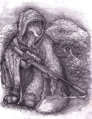 #anthro #canid #canine #doodle #furry #gun #rifle #sketch #tribal #weapon #wolf #anthrofurry #blackandwhite #ethiopianwolf #loincloth #nobackground #pencildrawing #traditional
