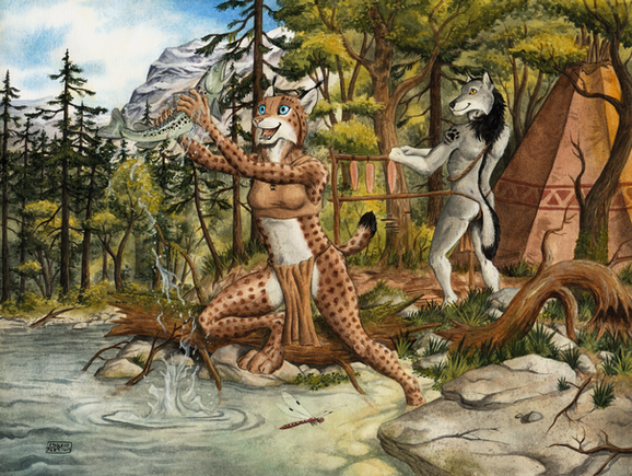 This is the second prize of the 3000 watchers raffle I held some days ago, won byHe asked me to draw his Ethiopian wolf character Bruma, and I have to admit I had a lot of fun working on this, so much in fact that I'm not sure this can be considered a sketch anymore!