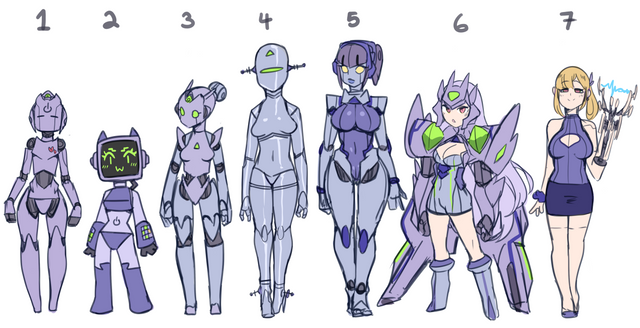 Very beautiful. Obviously the geometric features give the appearance of metallic hardness, but the shading makes her look soft and feminine.
