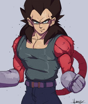 Vegeta`s cool but he did have to get bombarded by blutz waves to become Super Saiyan 4 by Bulmas masers