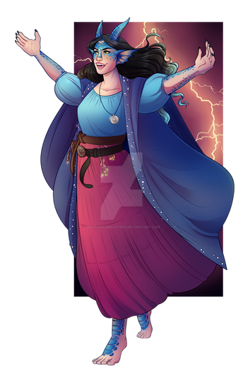 Awesome artwork! And an interesting story and character too! Glad to see you get to draw something for yourself and to hear that you are having fun with your dnd group.