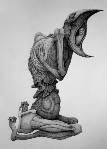 #abstract #drawing #fantasy #graphite #monster #pencil #sketch #surreal #blackandwhite #traditionalart