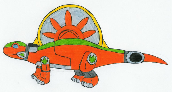 Abilities: can breathe fire. He has great control over his stamina and is capable of running long distances without tiring and swimming underwater for long periods of time. Has sharp claws and teeth to attack with. He can control his temperature through the use of the sail on his back which allows him to heat his body to the point where it burns others by touching but he can end up damaging himself by doing this.