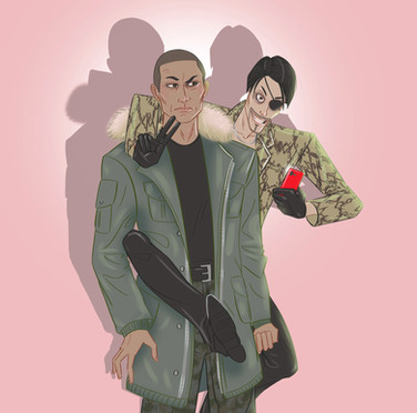Hercules Mulligan, John Laurens, Alexander Hamilton, Aaron Burr, and Marquis de LaFayette from the musical Hamilton.Drawn for my sister's birthday.