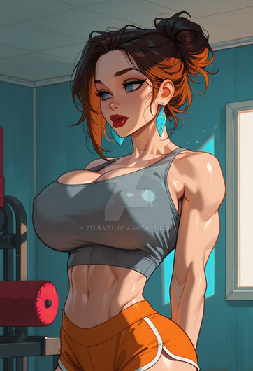 #digitalart #animestyle #athletic #beautifulwoman #brunette #croptop #fitness #hot #ponytail #relaxing #sauna #sensual #sexy #sweaty #workout #aigirl #aiart #aiartwork