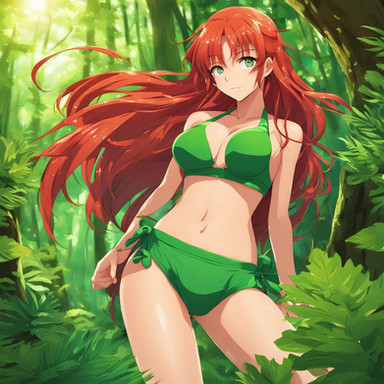 #fanart #anime #videogamefanart #redhair #digitalart #animestyle #beautifulwoman #bikini #forest #freckles #happy #nature #outdoor #redhead #sensual #sexy #smile #summer #greenbikini #aigirl #aiart #aiartwork