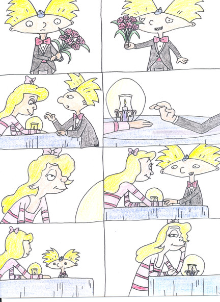 Arnold and Helga are in there teen years, and YES! They're dating each other! ;D Helga waned to make some money so she got a waitressing job at non other than... Chez Pairs! xDHelga is in the middle of one of her usual shifts, but this time Arnold decides to stop by just to see (bug) his girlfriend for fun. xP