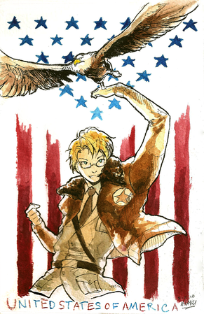 I'm still yet to figure out the details of what this anime is, but I love the symbolism I keep seeing with the America character. Lovely artwork
