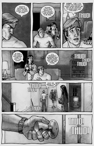 An excerpt of page 15 from "Shades of the Night" #1. Written by Troy Hasbrouck.The zombie situation escalates. Voght worries about the word getting out about another zombie attack. The local sheriff is clueless.