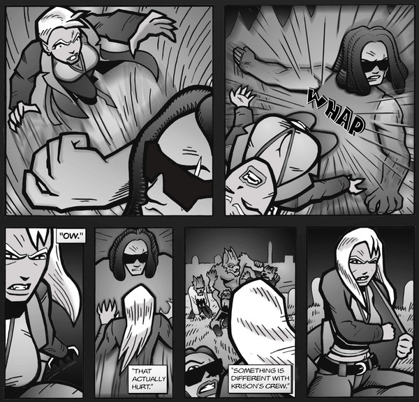 An excerpt of pages 22-23 from "Shades of the Night" #1. Written by Troy Hasbrouck.The zombie threat is revealed. Can anyone spot my "Dawn of the Dead" reference?