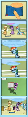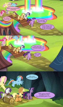 Oh, I don't know, I think the use of Celestia rather than Rainbow Dash adds a lot more to the punch line. Especially as she doesn't seem at all embarrassed to be there.