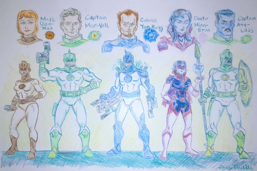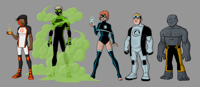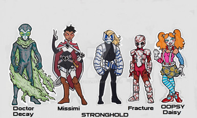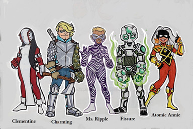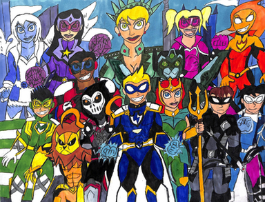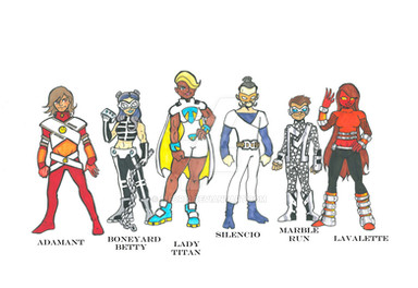 Solitaire- Pure superhero in her genes. Fun-loving Dudley Do-Right kind of person. She is actually a clone made of a number of superheroes stolen dna- but she doesn't know it...but her teammates start to pick up on a few character issues and false memories... When she finds out- her sunny disposition won't last long.