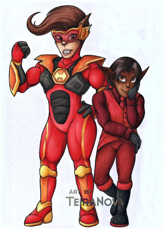 Gloss- New to earth, this alien actually has no true form. Her current look is from bonding with Grand Slam and his idea of a dream mate. She is crushing on him hard, but she can change her form as needed.