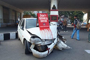 Half-cardboard mockup of a racing car, covered with graffiti in black marker. The meaning of this (assuming there is any) is unknown to me.For more car bodywork absurdities, see StrangeVehicles.com and EnglishRussia.com .