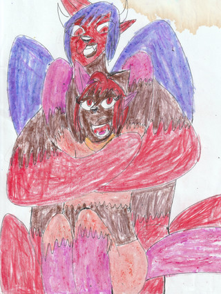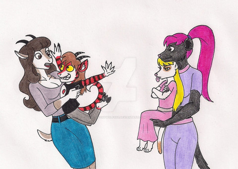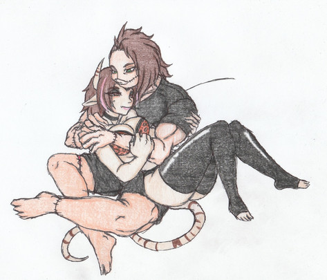 I've been meaning to draw these two for a while. Megi is Roxy's clone, and Rally's beloved wife. (Yes he's an adult. He's just very small and can be goofy when he feels like it. Didn't want his size to confuse anyone unfamiliar with the characters!)Rally (c)