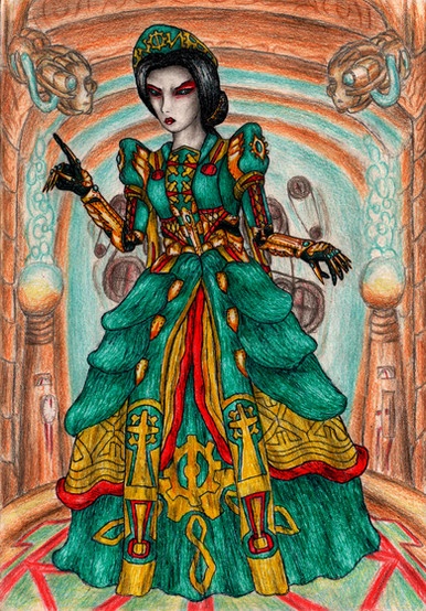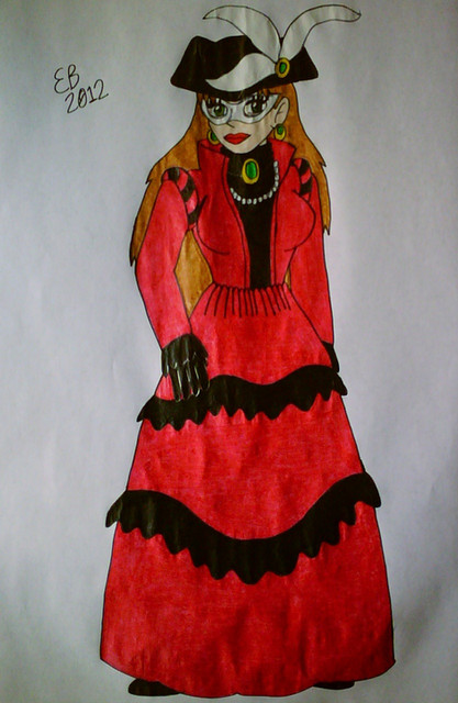 And here's Roxie rocking a steam-punkish ball gown. Eye-pieces were modeled after Lady GaGa's in her music video for "Alejandro." My parents saw this one and loved it.Roxie (c) me