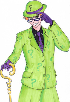 Riddle me this, which character in "The Batman" got saddled with arguably the most embarrassing redesign? Give up? Why you Freddy--whoops! Eddy! Anyone with as epic a voice actor as you can't be reduced to skin-tight jumpsuits. We of the fashion police will not stand for it. Step into Foxy's fashion corner and let her work her magic!A lot of the inspiration was drawn from the TAS Riddler's look, and I kind of copied the lapel and cuff borders from my Mad Possum police uniforms. Top it off with a hair-cut and one snappy-ass pair of shoes and he's ready to go. Gotham's brainiac finally has the fashion sense he was craving so much.