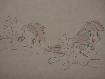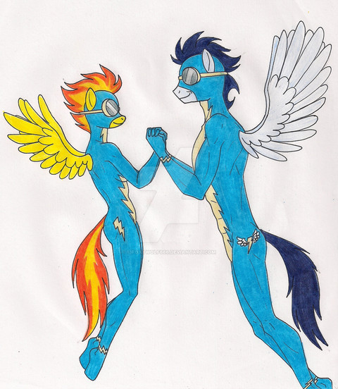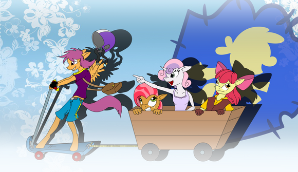 Trade withA cover concept for his friend (FIMFiction user 'Theta)'s story 'PonyxSis' in which Rumble's a total mare magnet. Specific mares requested were Scootaloo, AJ, Cheerilee, Cloud Chaser, and Flitter. Cougar brigade for the most part.