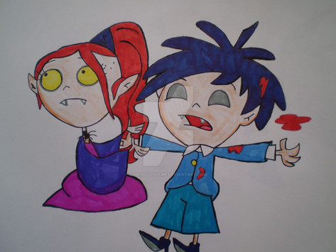 CAN U DRAW TWO OF EM FOR ME? #1 A VAMP VERSION OF NJ AND A VAMP VERSION OF BEETLEBONES FIGHTING OVER LYDIA DEETS. AND SHE IS IN THE BACKGROUND WATCHING IN SHOCK? #2 CAN U DRAW A VAMP VERSION OF BEETLEBONES SAVING LYDS FROM SOMETHING LIKE A SAND WORM? AND NJ IS IN THE BACKGROUND MAD AT HIM? I AM SORRY BOUT ALL THESE VAMPIRE REQUESTS I JUST RELY LOVE EM.