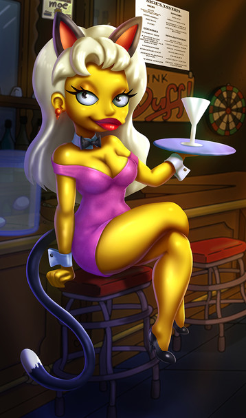 And here is an image with the mayor's favorite in kitty dress while working at Moe's .