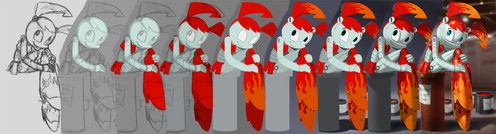 its a good idea to keep a copy of the flat colors , in case you make some mistake when painting the burn areas.