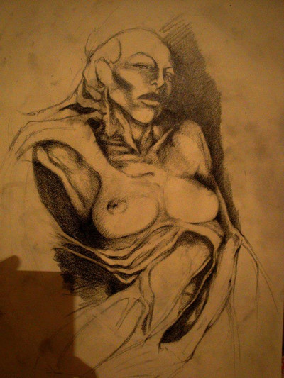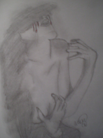 The style sort of reminds me of egon schiele's work, what do you think?sorry, the colours look very dull and barely stand out compared to what it looks like off the computer..i could really do with a scanner