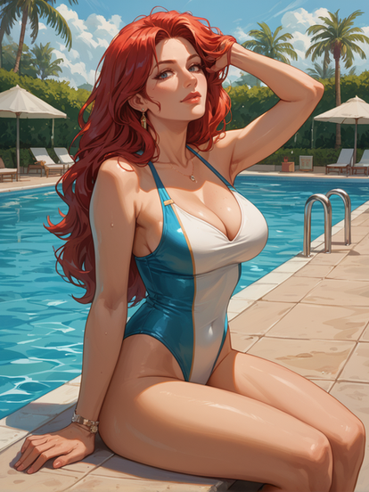 #fanart #digitalart #cartoon #animegirl #anime #characterdesign #beauty #redhair #beautifulgirl #bigtits #bikinigirl #comic #sexywoman #swimmingpool #wetbody