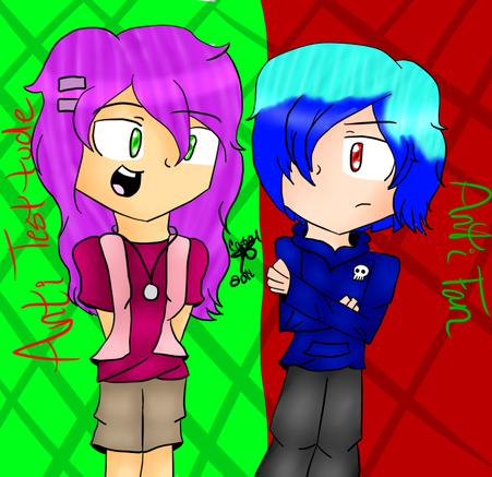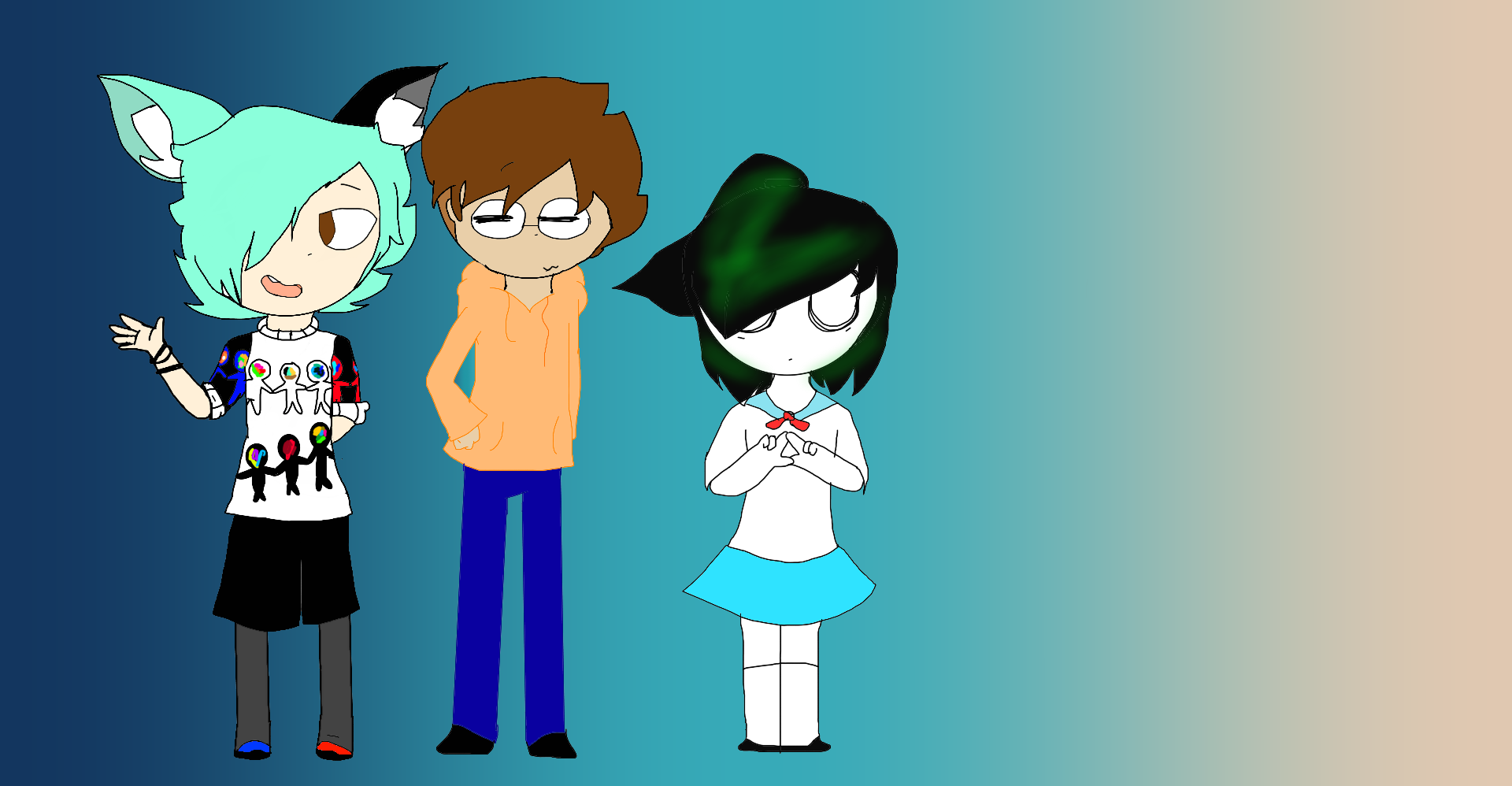 So I was searching for some more Draw The Squads for me to do, and I came across one that wasn't a specific base. It was... I don't really know how to describe it. It was one of the rare times I was on Tumblr and I found it. In this picture, the only one I think is a tad inaccurate is Aslan being the annoying one. I only put him as that because he says he's annoying but he's not. Mimi is obviously the cute one because, god just look at that face. I'm the mean one because I'm mean irl. Also, the reason why my hair is covering my face is because that's how I wanted my hair style when I was like 8 but then I changed. BlueGirl is the innocent one because, she's innocent.Edit - I've improved the quality