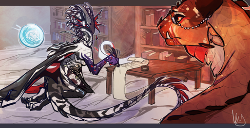 One of my underappreciated lovelies needed an overhaul for Artfight, so here they are!! Thought gold would be a more suitable "evil" colour than purple-- after all, knowledge is more precious than gold, and that's what their patron is all about. Being what it is, their mostly-forgotten god isn't afraid of showing off, and thus, the flight feathers it granted Basilisk are much shinier and more vibrant than the rest of their body.Related content
