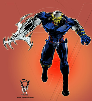 I felt the "original" Razorstrike pic was a bit lacking...so I decided to sort of redo it from scratch. I took the original line art and blue-lined it and then did a few things I rarely ever do...namely ink and draw in the background.In City of Heroes, one of the common threads between my main characters is their involvement with Crey Industries. Crey is a giant corporation that has its fingers in all kinds of things such as biotech to household appliances...most of these applications have darker motives.