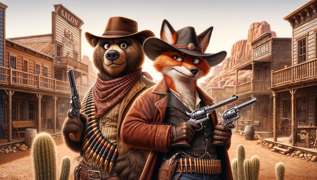 #ai #cowboy #dinosaur #fantasy #gunslinger #prairie #revolver #velociraptor #western