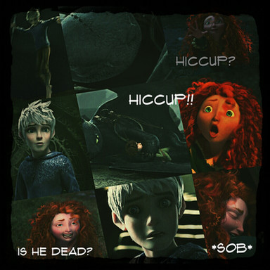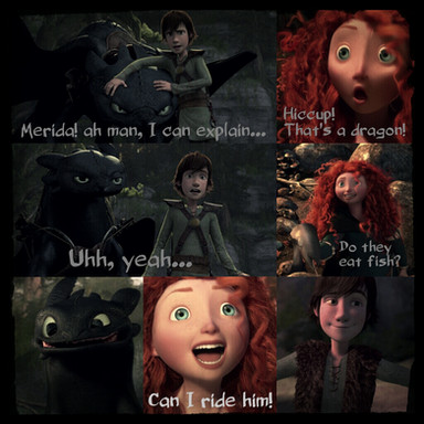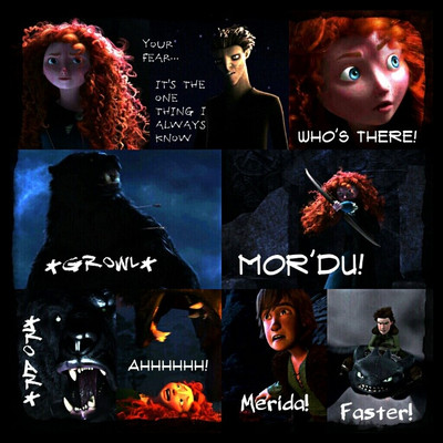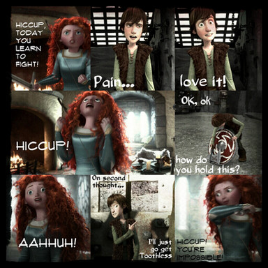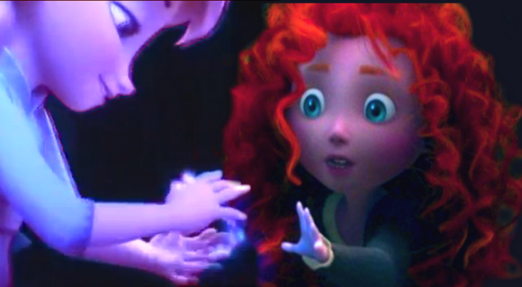 I'm thinking of a scene when Merida got so excited she lost control of her fire and accidentally burned Rapunzel(just like Aang did with Katara) and she became so guilty that she refused to use her powers ever again